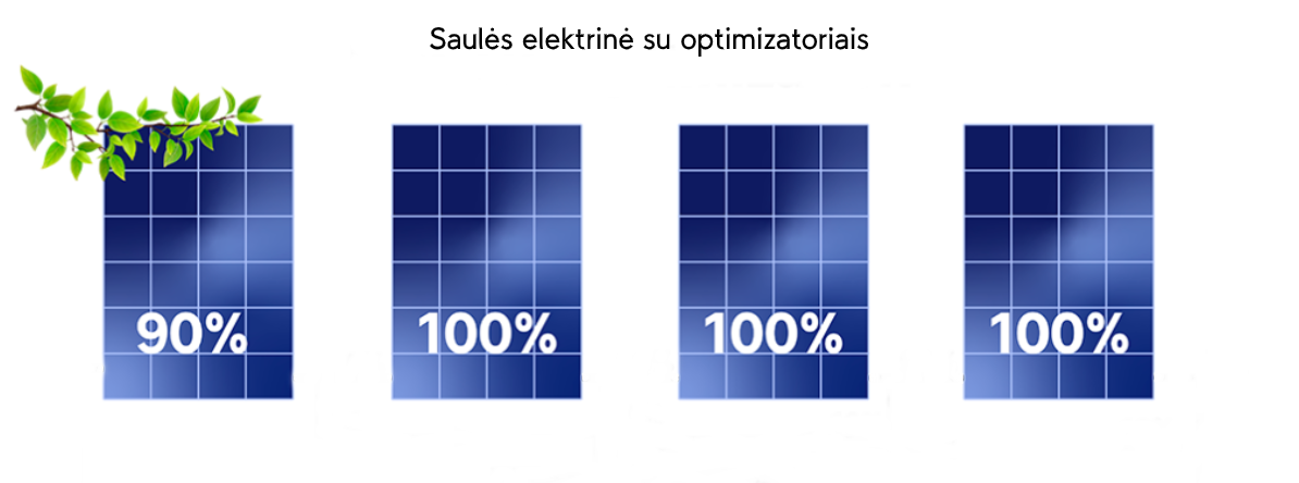 Įsivaizduokite, jog vieną arba kelis modulius užstoja namo dalis (dažnu atveju tai būna kaminas) ar kaimyno medis. Įprastu elektrinės veikimu, moduliai yra sujungti nuosekliai, vienas paskui kitą, todėl užstojus bent vieną saulės modulį – mažėja visos saulės elektrinės produktyvumas. Tokiu atveju optimizatoriai mažina šešėlio įtaką, o saulės elektrinės moduliai veikia atskirai, taip nebepriklausydami vienas nuo kito.