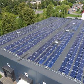 Tai kol kas didžiausia "Saulės grąža" įrengta elektrinė Kauno mieste. Saulės jėgainės projektas gana sudėtingas, nes saulės elementus reikėjo įrengti ant skirtingų statinių stogų, skirtingų pastatų krypčių, maksimaliai išnaudoti visą pastatų stogų plotą. Mūsų inžinierių rastas sprendimas leido įdiegti 30 proc. galingesnę elektrinę. Tolygiam elektros įsisavinimui panaudota rytų-vakarų montavimo sistema. Tokiu būdu saulės jėgainė gamina daugiau energijos nei sunaudoja, o elektros perteklius gali būti parduodamas.